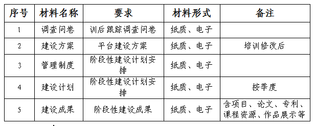 主要检查内容包括名师工作室、技艺技能传承创新平台建设方案的修改稿,工作室、平台建设情况书面说明,各主持人对培训内容和培训方式的改进书面意见等。需准备的材料清单如下表: